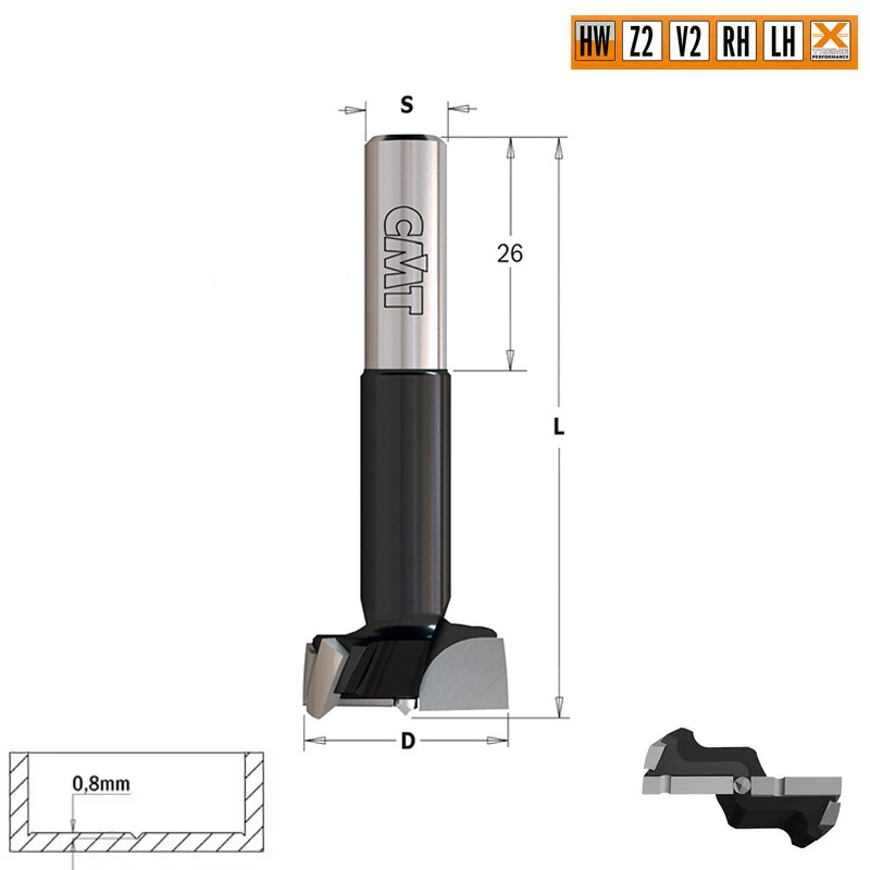 • идеально подходят для сверления глухих отверстий с чистым и точным резом под мебельные петли